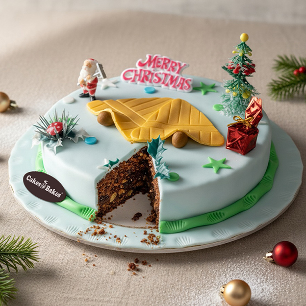 Novelty Christmas Plum Cake – Square Shape with Ribbon