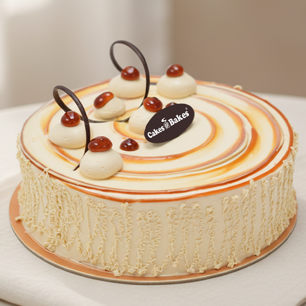Delight in our Eggless Butterscotch Marble Cake made with soft vanilla sponge, homemade butter caramel sauce, and roasted cashews. Freshly prepared by Cakes and Bakes Bakery Dubai.
