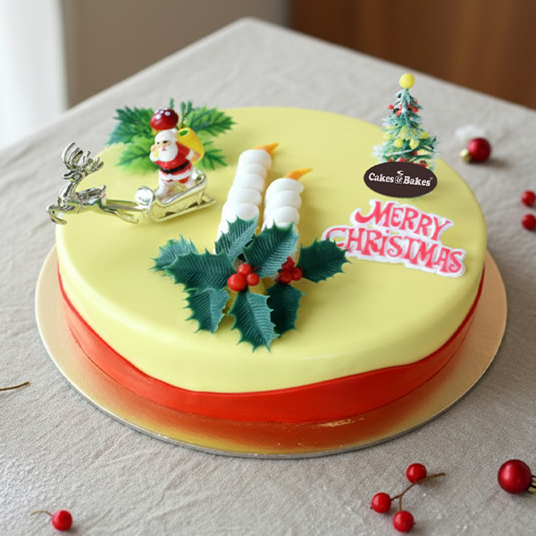 Topped with Christmas decorations and fondant candle designs, it’s a charming centerpiece for holiday dessert tables, gifting, or festive celebrations. Lightly spiced, moist, and aromatic, this plum cake is a perfect seasonal indulgence.