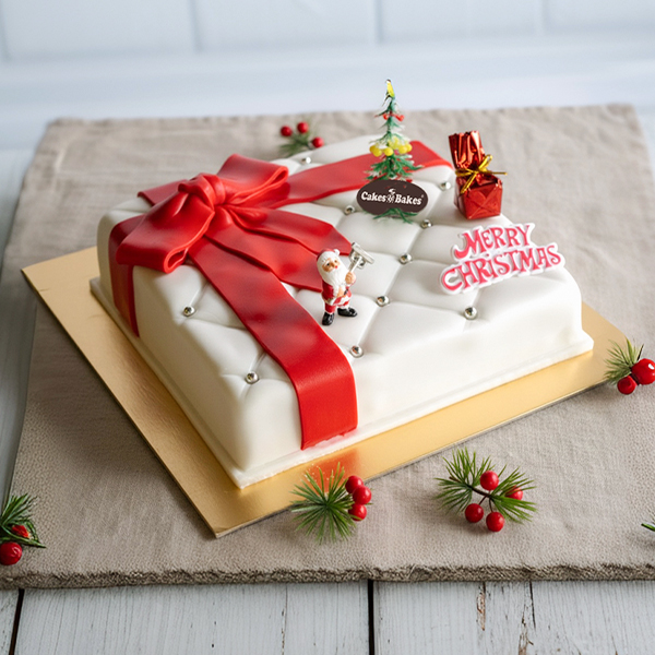 Novelty Christmas Plum Cake – Square Shape with Ribbon